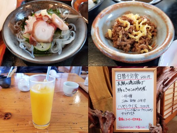 ということで午後1時過ぎに入店です、、、店内にはテーブル席にお客さんが3組座っていました。。。我々は空いていたテーブル席に着き、私は"日替り定食"を、先生はもちろん"塩さば(鳥取 酒津加工)定食"を発注です。。。