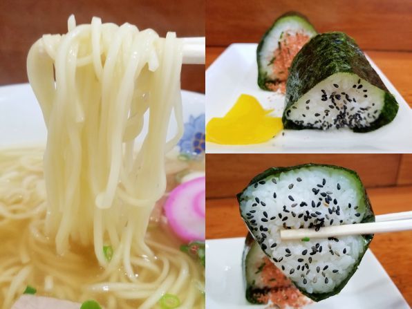 私流の食べ方は、まず麺を啜って"おにぎり"を一口、、、そこにスープを流し込みます。。。うんうん、これがイイんです、、、うんうん、旨い旨い~☆