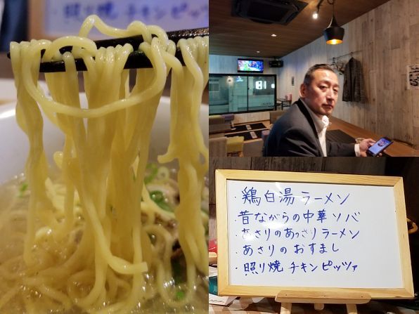さてカウンター席に着き、我々は焼酎のソーダ割や水割りをお願いしました、、、そしてラーメンも三種類を注文です。。。どれくらいの時間が経ったかは???ですが、、、順にラーメンができあがってきました。。。
