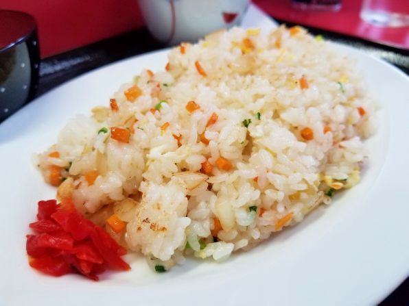 さぁ気になるお味です。。。「大鵬軒」さんの"焼めし"は、中華の"炒飯"でなく、まさに食堂系の"焼めし"でしょう、、、なのでパラパラまではいきませんが、少し焦げがあったりして、芳ばしく炒められています。。。具材は以前はチャーシューだと思ったのですが、、、今回は鶏肉、人参、玉ねぎ、ネギ、そして卵でした。。。