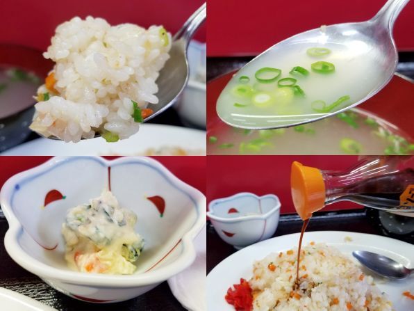 午後1時10分頃に暖簾をくぐると、店内には2人のお客さんです、、、一人の私はカウンター席に着き、決めていた"焼めしセット"をお願いしました。。。そして待つこと約5分、、、注文のできあがりです。。。