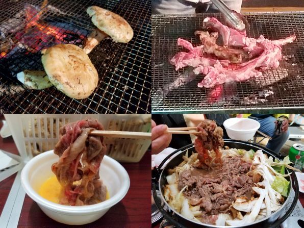 さて食材はもちろんA5とA4和牛です、、、またメンバーに青果市場さんがいるので、松茸も用意してもらいました。。。と言うことで豪華な"松茸すき焼き"です、、、肉も松茸もタップリあるので、食べきれないほどでしょう。。。うんうん、旨い旨い~☆