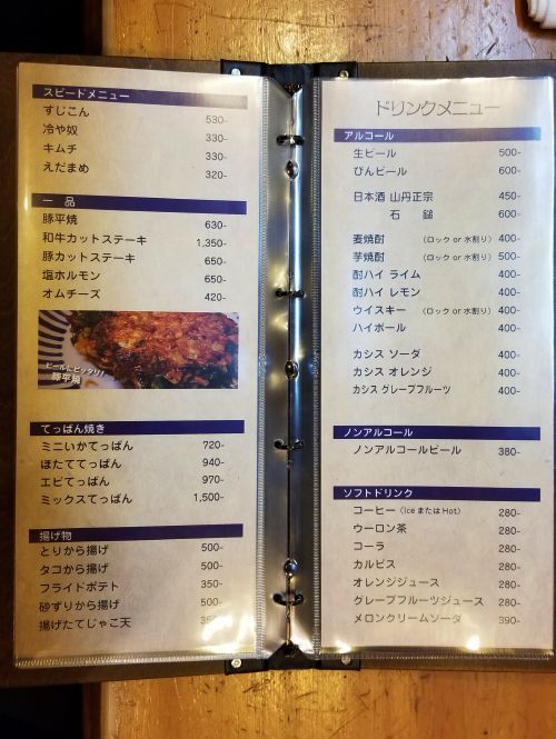 午後7時頃にカウンター席を予約して入店すると、その席の隣には、同級生のF田君が座っていました、、、F田君は常連さんなのですねぇ。。。私はハイボール、家内はビールで乾杯し、"とりから揚げ"や"オムチーズ"を注文です、、、また家内と娘は"豚玉"などもお願いしました。。。
