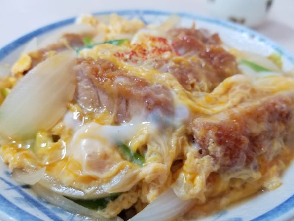 さぁ気になるお味です。。。揚げたてのカツは肉厚でボリューミー、、、そのカツを出汁で煮込んだ卵とじになっています。。。サクフワの食感がGOOD!! そして一緒にとじられているのは、玉ネギと細ネギのWネギ、、、玉ねぎは甘くてシャクシャクです!! また卵もかき混ぜすぎず、トロ~リ黄色と白のコントラストが絶妙絶妙。。。