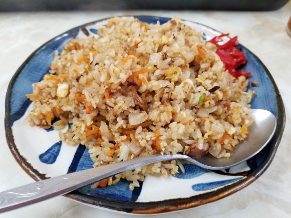 午後1時過ぎに入店すると、他にお客さんはいません、、、お母さん曰く、やはり新型コロナの影響で、客足が遠のいてしまっているようです。。。私はいつものカウンター席に着き、久しぶりに"焼めし"に"鳥スープ(小)"の最強タッグで発注、、、やがて待つこと約6分で注文のできあがりです。。。
