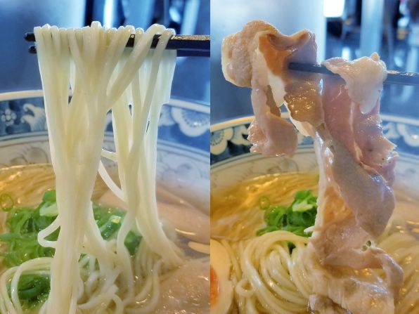 そしてスープは、表面の脂粒から鳥ベースと思われます、、、ほんのり甘い塩味に、薄い醤油の入っているような感じで、ちょっと魚介系も鼻に抜ける気もします。。。アッサリでこのスープもGOODでしょう!!