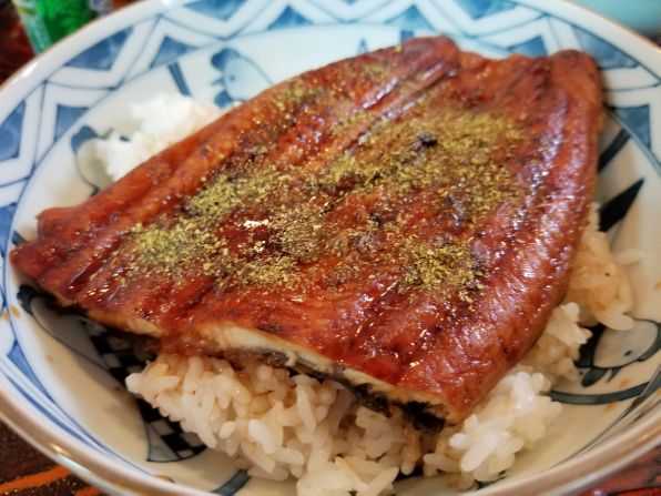 さぁ気になるお味です。。。丼の上には、大きくて肉厚の鰻が鎮座しています、、、そこに粉山椒をフリフリフリ、私は粉山椒が好きなので、かなり多めに振りかけます。。。そして柔らかい身を一口大にカットして、タレに染まったご飯と一緒に、、、うんうん、フワフワっとした身に、甘いタレの幸せが口内に拡がります。。。うんうん、旨い旨い~☆