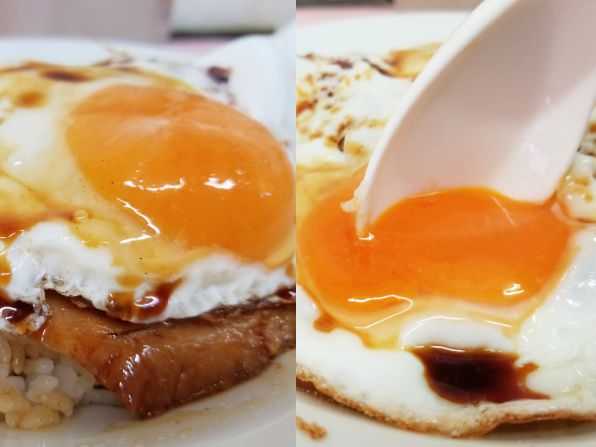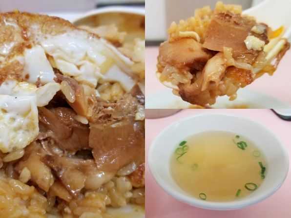 そして箸は使わず、レンゲにタップリ乗せて口内に、、、うんうん、モッチリした焼豚と玉子とご飯が、程よい甘みのタレに混ざってGOOD!! その焼豚はこってりバラ肉とあっさりモモ肉の二種類だと言うことですねぇ。。。うんうん、旨い旨い~☆