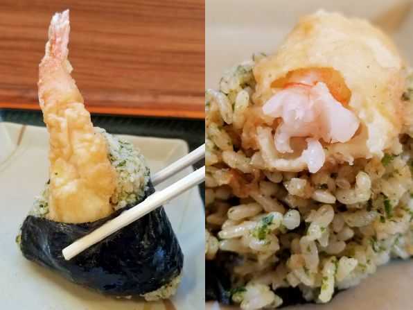そして海老天がビョ~ンと突き出た"鬼の天むす"は、ご飯に青海苔がまぶされていて、ほんのり甘く、磯の香りも漂います、、、"はまぐり"と磯の香り、、、なんだか潮干狩りのようです。。。うんうん、旨い旨い~☆