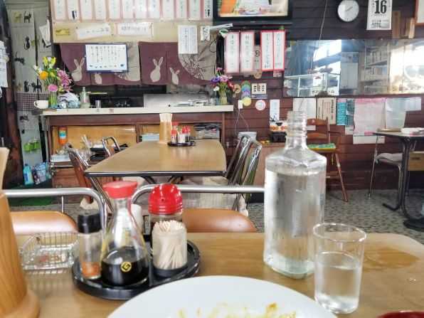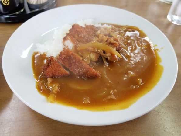 午後1時15分頃に暖簾をくぐると、他にお客さんはいません、、、私はテーブル席に着き、迷わず"カツカレー"をお願いしました。。。やがてトントンと豚肉をたたく音が聞こえてきて、、、待つこと約7分で注文のできあがりです。。。
