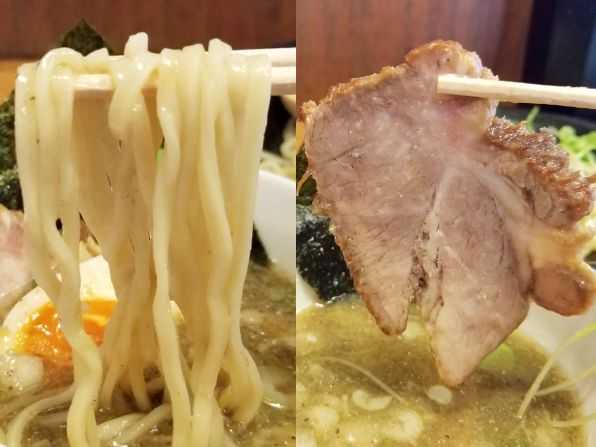 さぁ気になるお味です。。。まず麺は中太で中~やや多加水と思われる、緩やかウェーブ平打ちタイプ、、、つけ麺によく合う、ツルツルシコシコの食感がGOOD!! 麺の味も濃いめということで、つけダレによく合います。。。