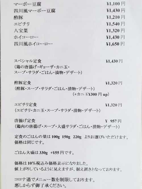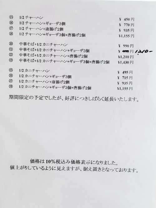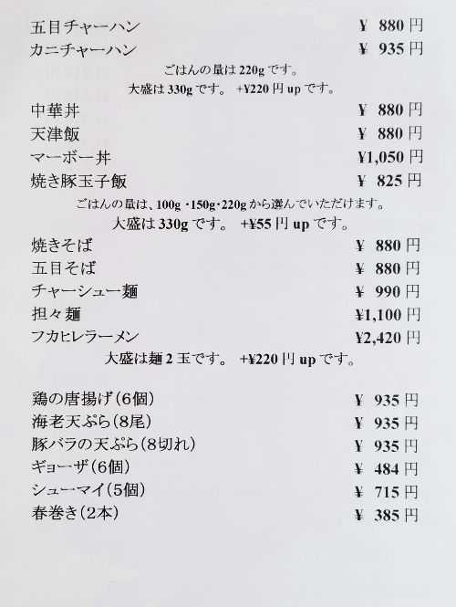 さて店内にはお客さんが1人、、、知り合いでしたので少しお話をしながらメニューを確認。。。おっ!! メニューが新しくなっています、、、税込価格表示に変えたようですが、値上げはないようです。。。私は今回、久しぶりに"天津飯"を発注です、、、やがて待つこと約11分でできあがりましたねぇ。。。