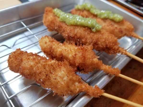 さて串カツ屋さんなので、家内と娘は串カツの注文です、、、でも私は"大根サラダ"、"おや鳥のポン酢づけ"、"だし巻き"で、串カツはスルーでした。。。今日は昼ご飯を食べ過ぎていたので、もうこれでお腹PANPAN、、、というか"大根サラダ"がスーパーボリューミーなのですねぇ。。。うんうん、旨い旨い~☆