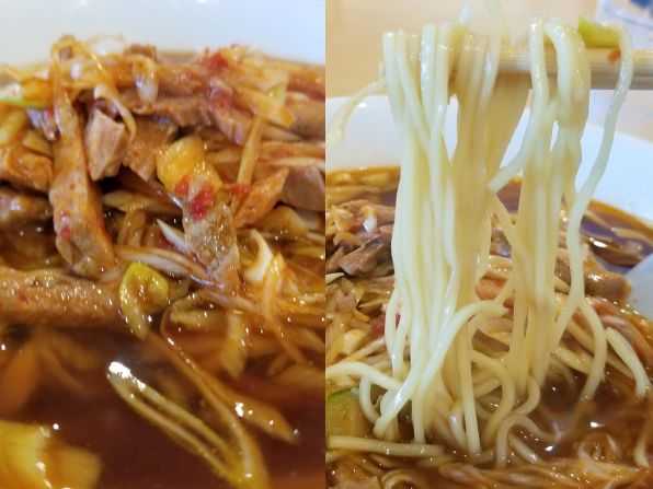 そしてトッピングは細切りのチャーシューとタップリの白ネギで、おそらくこの具材を炒めてその上にスープを注いでいるのでしょう、、、また小ライスが付いているのがありがたく、麺と具をオン・ザ・ライス、スープを一緒に流し込んでいただきます。。。うんうん、旨い旨い~☆