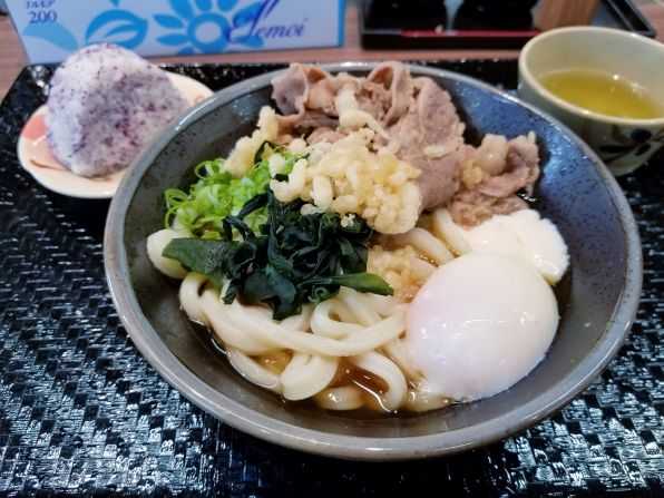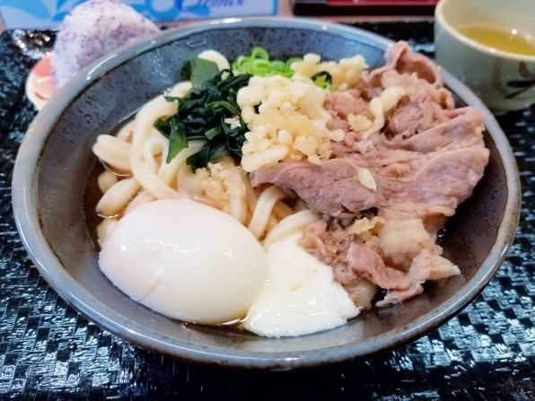 [肉温玉ぶっかけうどん(小):¥570+おにぎり:¥110]