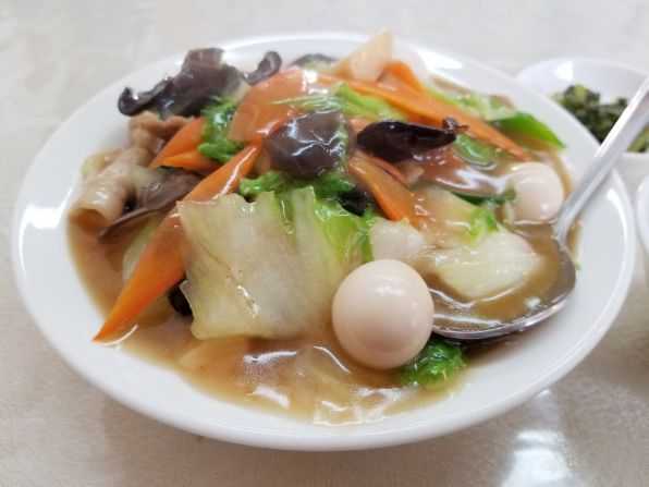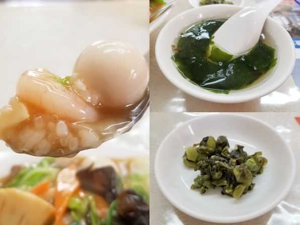 1時20分頃に入店すると、ちょうど途切れたところだということで、他にお客さんはいませんでした、、、私は窓側のテーブル席に着き、餡かけの"中華丼"をお願いしました。。。やがて待つこと約6分、、、注文のできあがりです。。。