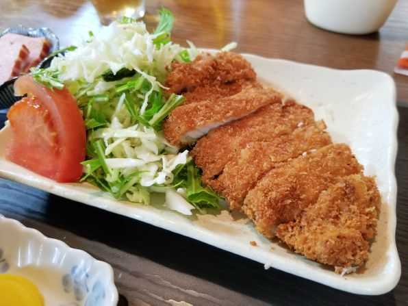お昼の時間に来客があったので、暖簾をくぐったのは午後2時過ぎ、、、遅い時間でしたが1人のお客さんが座っていました。。。私は空いていた席に着き、今日は迷わず"とんかつ定食"を発注です、、、やがて待つこと約5分、定食ができあがりました。。。