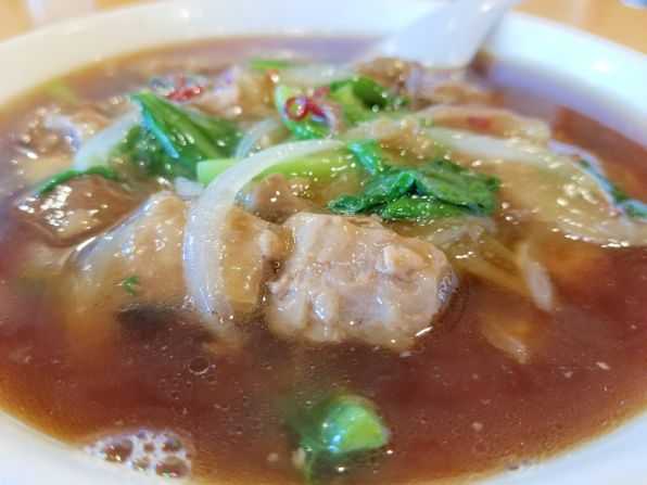 午後1時半過ぎに入店すると、店内には3組のお客さんです、、、私は空いていたテーブル席に着き、"牛南麺"をお願いしました。。。そうです気になっていたのは"牛南麺"なのです、、、"牛肉麺"なら台湾の国民食として聞いたことありますが、"牛南麺"は聞いたことがありません。。。やがて待つこと約5分、、、"牛南麺"ができあがりました。。。