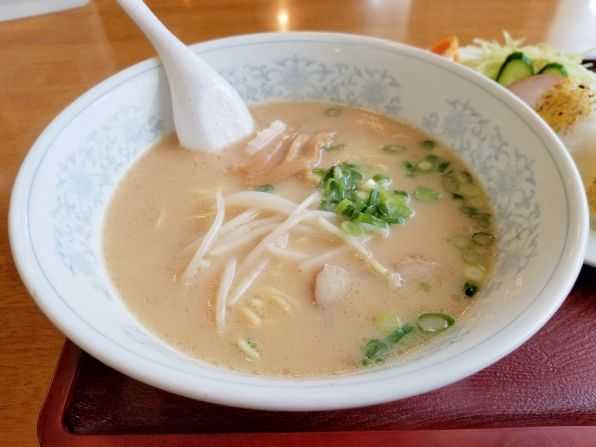 午後1時20分頃に入店すると、他にお客さんはいません、、、私はいつものテーブル席に着き、今日は"博多ラーメン定食"をお願いしました。。。実は先日の「笑福」さんのスープが、「どんたく」さんの"博多ラーメン"に似ている気がしていました、、、やがて待つこと約4分、定食のできあがりです。