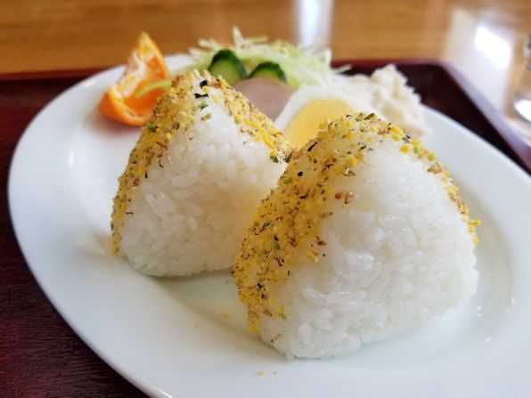 また定食には"ラーメン"の他に"おにぎり"2個と"ポテトサラダ"、"茹で玉子"、"ハム"、"キャベツ"が付いています、、、麺を啜って"おにぎり"を囓り、そこにスープを流しこむのが私のルーティン。。。 うんうん、旨い旨い~☆
