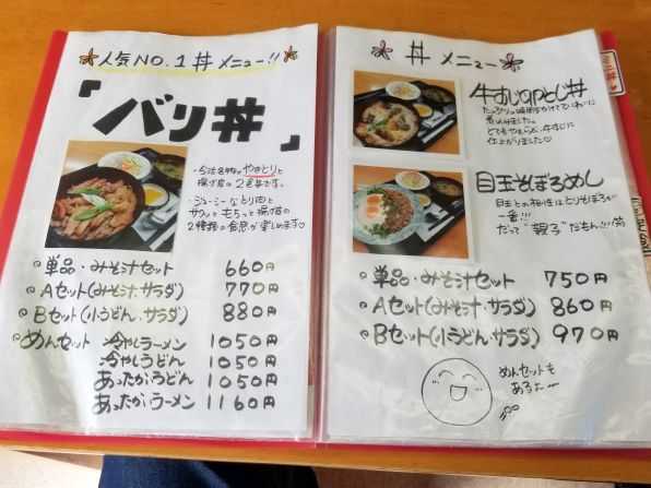 午後1時20分頃に暖簾をくぐると、店内には二組のお客さんです、、、私は空いていたテーブル席に着き、一端メニューを確認してから、予定の"目玉そぼろめし(単品・みそ汁セット)"をお願いしました。。。やがて待つこと約5分、、、注文のできあがりです。。。