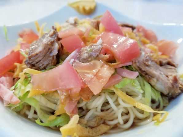 またトッピングがゴロゴロの小石大チャーシューの塊に、ハム、トマト、レタス、錦糸卵、、、タップリ盛りつけられています。。。よーーくマゼマゼしていただくと、、、おおぉぉぉ、涼です涼~~!! うんうん、旨い旨い~☆