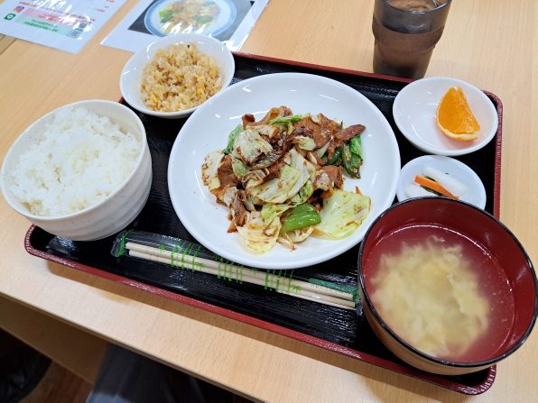午後1時10分頃に入店すると、先に来たNSさんが息子さん+息子さんの彼女と三人で座っていました、、、事前にNSさんと連絡を取っていたので、私が席に着くタイミングで"ホイコーロー定食"のできあがりです。。。(笑)