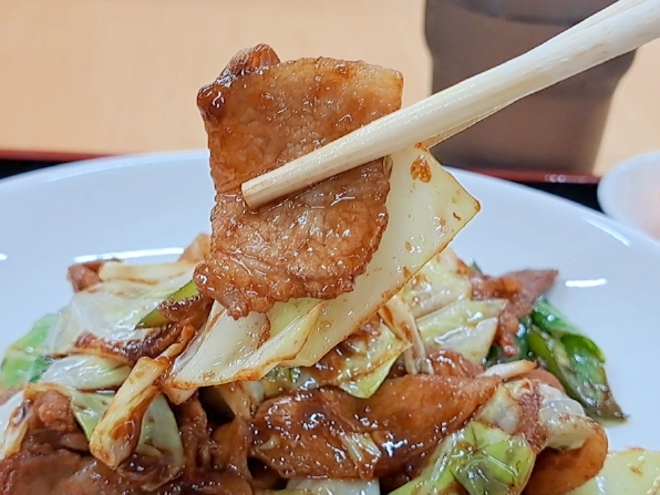 さぁ気になるお味です。。。タップリの豚肉が、キャベツ、ピーマン、ネギ等と炒められています、、、辛さは控えめの辛味噌なので、子供でも大丈夫でしょう。。。こんな"ホイコーロー"はオン・ザ・ライス!! ご飯と一緒にかっ込みます!! うんうん、旨い旨い~☆