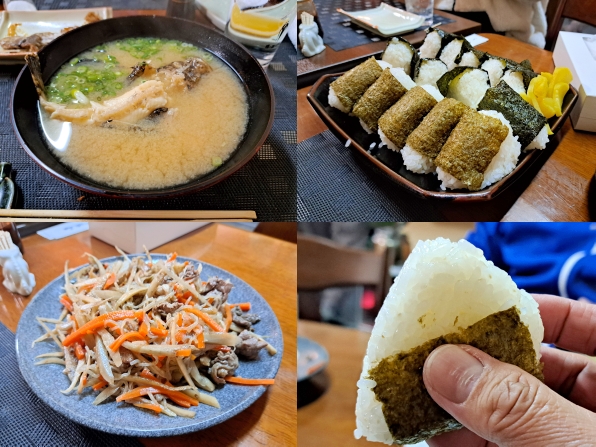 やがて分厚いトンカツが出てきました、、、厚みは約3cm、、、肉質の良いトンカツですねぇ。。。また舌平目や鯒の味噌汁、、、そして〆は塩おにぎりです。。。うんうん、旨い旨い~☆