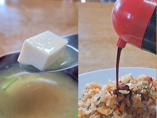 具が沢山入っていて細切れ焼豚、ハム、玉子、にんじん、玉ねぎ、ネギ、、、私は半分くらい食べたところで、ウスターソースを廻しかけますねぇ。。。また"味噌汁"の具は豆腐、、、それに魚粉が入っているのか、鰹の香りがプンプンしてきます。。。うんうん、旨い旨い~☆