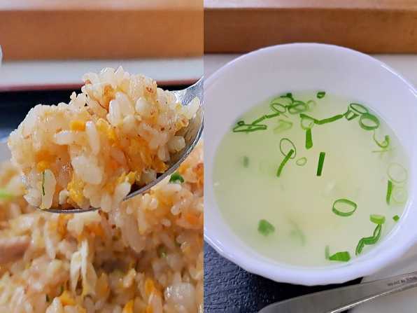 さぁ気になるお味です。。。"焼めし"は初めて食べたのですが、ほどよいパラパラ具合に、しっかりした味付けでしょう、、、具は豚肉、玉ねぎ、人参、玉子、ネギとオーソドックスですが、玉子の比率が多いのか、全体的に黄色に仕上がっています。。。