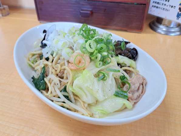 午後1時30分過ぎに入店すると、店内には2組のお客さん、、、私はいつものカウンター席に着き、今日は"ネギ塩焼きそば"を発注です。。。やがて待つこと約5分、、、注文ができあがりました。。。