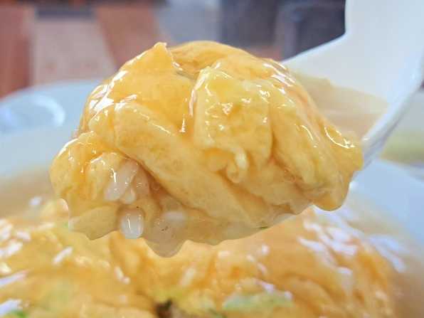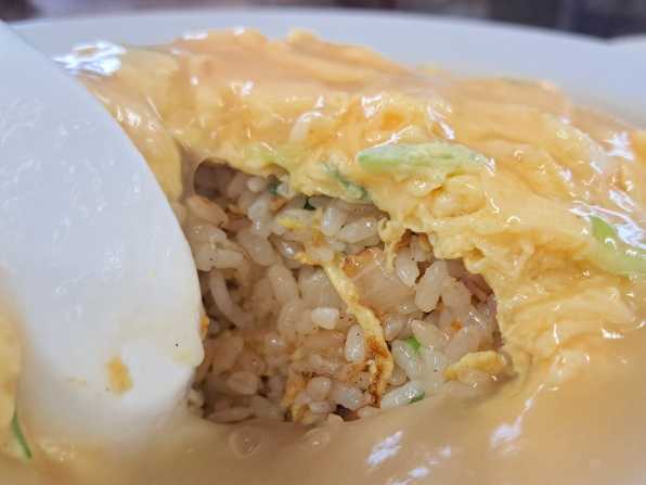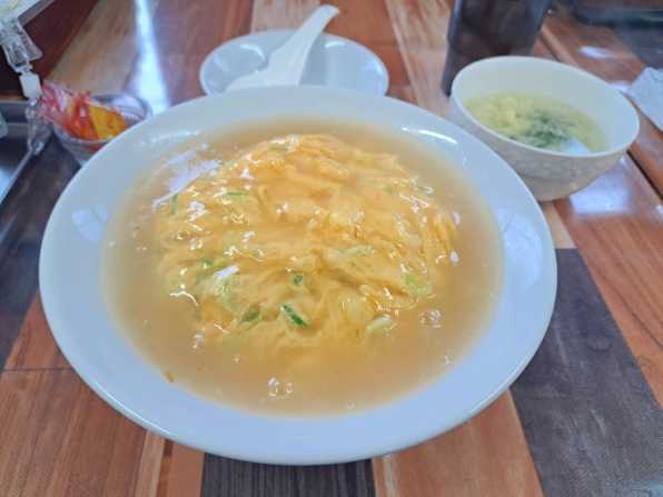 お店のデフォの" 天津チャーハン "は醤油味です、、、なので茶色の餡なのですが、少し前に白い餡の" 塩味の天津飯 "をお願いしました。。。これが気に入ったので、今回は塩味をリクエストしたのです。。。
