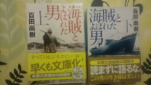 こんにちはアイアン太郎です。昨晩「未来世紀ジパング」で、日本の鉄道を輸出する!!というドキュメントが放送されていました。世界の鉄道市場は24兆円/年程度あるらしいです。そこを、ドイツ、フランス、カナダ、日本、中国が争っているとのこと。ただ番組を観ていて驚いたのが、ニューヨークの地下鉄は1999年に切符の自販機が導入されるまで、窓口での販売だったらしいです。ウーンかなり遅れてましたな。その導入された自販機のデザインは日本人がしたとのこと。鉄道技術とあわせて日本は優秀ですなと感心しておりました。そんなビジネスの話を観ていたこともあり、思い出した本があったので、アイアンの読者レビュー第三弾!!百田尚樹先生の海賊と呼ばれた男をレビューしたいと思います!!このお話しはガソリンスタンドでお馴染みの出光興産の創業者 出光佐三さんをモデルにした、実話に即した歴史経済小説です。主人公の国岡鐵造が第二次大戦前中後の歴史に振り回されながらも、常に国益を考え、浮利を追わずの精神で、いかに石油事業を起こし、発展させたかというストーリーが痛快でした!!何度も危機的状況に陥りながらも、従業員を解雇せず、人を大事にし、逆にその人達から助けらたり、良い後援者、援助者が現れ助けられるシーンがあり、アイアンが昔から上司に言われている、頑張っていれば必ずそれを評価している人がいて、助けてくれる。と言われていますが、まさしくこれですなと考えさせられました。また読んでいる最中、主人公のがんばりに何度も感動し、涙が溢れそうになり、小説ではありますが、実話に即しているということで、こういう人が日本にいたことを誇りに思いました。アイアンもビジネスマンとして、見習って仕事をしたいと内に秘め励みにしている次第です。あと石油事業の歴史についてあまり知らなかったので、そういう面でも勉強になりました。今回は読んだあとのすっきり感、ストーリーの痛快さ、歴史好きのアイアンがたいへん勉強になったということで、5点満点とさせていただきます。海賊と呼ばれた男 百田尚樹先生海賊とよばれた男(上) [ 百田尚樹 ]海賊とよばれた男(下) [ 百田尚樹 ]皆さまも是非読んでみてください!!小説はちょっとという方には、イブニングに漫画が連載中ですので、そちらをも試しに読んでみてください。それでは今日も最後まで読んで頂きありがとうございました。アイアン太郎にほんブログ村