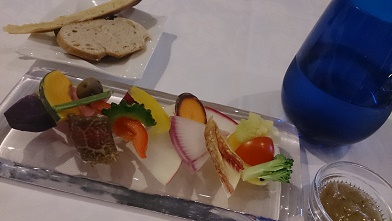 日曜日は退職したお仲間さんのお別れランチでした。すでに下見をしていたのでお味もお店の雰囲気もバッチリ合格!お食事はワインが合いますが、目で見て楽しむだけに・・・ 今回はワンランクアップのお食事なので、た・の・し・み まずは前菜ですが、お店の方曰く、箸休めの代わりに、好きな時にお楽しみくださいとの事。 新鮮で、綺麗、食感もしっかり、野菜本来の甘い味が(≧∇≦)bバーニャカウダーで頂きます。 そして次々と出される、涼しげで新鮮なお料理。味もそれぞれの食材を生かし、どれもこれも美味しい! パスタは色々選べて、珍しく猪の肉のパスタもありましたが、冒険しないで芽キャベツと貝、じゃがいもの ジェノベーゼをチョイス。パスタの茹で加減も塩味もちょうど(≧∇≦)b 神のドルチェはりんごのタルト。りんごを使った違った味と食感の3層でできたデザート。甘さが自然で上品。飾り付けもダイナミック 最後に3種の一口クッキーで大満足 あ~強いてあげれば、コーヒーのお代わりがあれば、もっと満足 食べてばかりじゃなくて、ちゃ~んと新しい職場の話も聞きました。古くからいるスタッフさんやパートさんはとても優しくて、今回は扶養を外れてのお仕事になり勤務日数も勤務時間も増えましたが、ボーナスも出るし、パート時代と違って祝日や盆暮れ正月のお休みに左右されずにお給料が入るので良かったみたい。 そうそう、私以外の方は皆さんスリム。痩せているのにランチは全て完食・・・ですが・・・夕飯をほとんど食べないで 調整しているそうです。ここで、差が出るのよねぇ~見習わないとねぇ~ いぶ~たは枕が大好き。人間と同じように使うのよね 応援ありがとうございますにほんブログ村 ポチッと感謝です人気ブログランキングへ