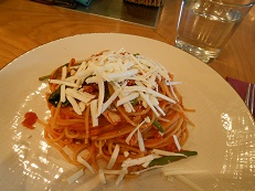 パスタは細く、オリーブオイルの使用が少なかったので、あっさりいただきました。