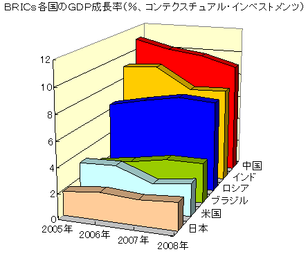 今日のまとめ 1. 素材のセクターはグローバルな視点から分析する必要がある 2. 近年の好景気で需給は引き締まっている 3. 全ての工業向け金属の価格が高騰している■グローバルなセクター 素材のセクターは昔からグローバルな視点による分析が欠かせないセクターでした。分析の対象となる商品が世界中どこでも比較的均質であり、大量に輸送するのに適していること、生産者の採掘コストが決定的に重要であることなどがその原因です。BRICsの台頭による需要の底上げで素材セクターが歴史的に持ってきたこうしたグローバルな色彩は最近一層強まっていると言えます。これまでの先進国中心の消費からBRICsを中心とするエマージング諸国へ需要の中心がシフトするのに伴って最近では素材のセクターはあたかも成長産業のような様相を呈しています。そういう認識は正当化できるのでしょうか。この問題を次の三つの角度から考えてみたいと思います。 1. 景気循環的な視点 2. BRICs経済が需要構造に与える影響 3. 国際的業界再編成の動き■景気循環的な視点 世界の経済はドットコム・バブル崩壊、9・11同時テロ、それに続く米国のイラク進攻という一連の悪いニュースを消化した後、2003年頃を境に景気拡大サイクルに入りました。ここ数年の世界の経済成長は過去最高のペースに近い、極めて高い成長を記録してきました。 今はその好景気がどれだけ持続するかという点が世界の投資家の主な関心事です。インフレ懸念から世界各国が政策金利を引き上げてきたこと、更に米国では住宅市場が調整局面に入っていることなどから今年はじめの時点では世界経済はある程度の減速を余儀なくされるという見方が優勢でした。しかし直近のデータでは意外に世界の経済は底堅い動きとなっています。下に示したのはOECDのコンポジット・リーディング・インディケーターです。リーディング・インディケーターは主に短期での景気の先行きを占う指標として使われます。これで見るとOECD全体(紫色)として景気の拡大が維持されていることがわかります。また、中国のリーディング・インディケーターは極めて高い水準で高止まりしています。さらにブラジルやロシアの指数もここへきて上向いています。 このように今の世界経済は主にBRICs諸国の経済が好調であることから好景気が持続していると考えて良いでしょう。こうした好景気を受けて素材の在庫は段々取り崩されつつあります。下のグラフは各素材の在庫を消費量で割った数字です。今、仮に供給がストップしたとすると在庫を完全に使い切ってしまうのに何週間かかるかを計算したものです。こうして見ると在庫消費比率は全体に右肩下がりであり需給関係が引き締まっていることを感じさせます。 このような経済環境を背景に各素材の価格は下のグラフにみられるように過去4年の間に79%から295%も上昇したのです。