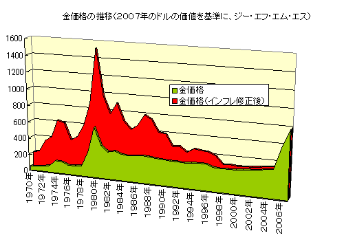 今日のまとめ 1.ドルのファンダメンタルズの悪化が金価格高騰の一因 2.需給関係面から見ても金価格は先高観が強い 3.操業上の問題などが産金各社の株価の明暗を決めている ■1000ドルを窺う金価格 このところ金価格は堅調に推移しています。去年前半675ドルから725ドルのレンジで取引されていた金価格は9月から上昇トレンドに入り、現在911ドルに達しています。ゴールドの市場の調査会社として定評のあるジー・エフ・エム・エス社は今年の或る時点で金価格が1000ドルをつけるだろうと予測しています。それでは何故金価格がこのように堅調に推移しているのか、その背景を考えてみましょう。■蝕まれたドルゴールドに投資家の関心が向かう最初の理由はドルに対する不信感だと思います。近年、イラク戦争への戦費投入やポーク・バレリングと呼ばれる既得権益に絡む予算の奪い合いなどでアメリカの財政は悪化しました。実はこのような放埓な金融財政政策には前例があります。 1961年、ケネディー大統領はベトナム戦争の戦費調達をやりやすくするためFEDに金融を緩和しろと圧力をかけました。同時に大型減税案を打ち出します。このときは議会がそれを阻止しました。ところが1963年にケネディー大統領が暗殺されてしまい、アメリカ人は強烈なショックを受けます。副大統領だったリンドン・ジョンソンはケネディーの後を受けて大統領に就任すると「ケネディーの遺志を継ぐ」という事を宣言し、ケネディーのやり残したイニシャチブを全部実行に移します。それまで健全財政などの見地からケネディーに反対していた反対派はケネディーに同情する圧倒的な世論の高まりに負けて大型減税を通してしまうのです。そればかりではなく、メディケアなどの社会福祉制度もこのケネディー暗殺後の、アメリカ国民がエモーショナルになっているときに相次いで可決します。 これはちょうど9・11の同時多発テロの後にアメリカの世論が右傾化し、財政の悪化を招いた過程と酷似しています。ジョンソン大統領は低金利維持を最優先の政策とします。FRBはどんどんドル紙幣を増刷し、アメリカの国際収支は悪化しました。こうした、「不況のときにはどんどん財投をした方が良い」という考え方は経済学者ジョン・メイナード・ケインズの理論であり、それを信奉する人たちはケインジアンと呼ばれます。ジョンソン大統領のこの政策は当初成功を収めます。そこで米国の雑誌、『タイム』はWe are all Keynesians now.、つまり「我々は皆、ケインズ派だ!」と宣言するわけです。 ところで相場の世界では『タイム』の表紙に載る様なアイデアはそれがピークで、後は下り坂になるというジンクスがあります。ケインズ派がわが世の春を謳歌したのも、やはり束の間のことでした。なぜなら1971年の8月にはジョンソン大統領の後を継いだニクソン大統領がドルの切り下げを発表せざるを得なくなってしまったからです。さらにベトナム戦争遂行に絡む放埓な金融政策ならびに財政政策がインフレの芽を世界経済にしっかり植えつけてしまいました。その後、1973年にOPECのカルテルによる原油価格引き上げが世界的なインフレの直接的なきっかけになるわけですけど、上で見てきたようにもうそれ以前にインフレになる環境は整っていたわけです。ケインズ派は「ベトナム戦争さえなければ我々の実験は大成功を収めていたのに」と嘆きました。 でもそれは物事の順序を勘違いしていると思います。ベトナム戦争を遂行せんがためにケネディーはケインジアン的なレシピーを取ることを決めたわけであり、そもそも戦争やケネディーの暗殺という事件が無ければこういう展開にはならなかったのです。今回、ベトナム戦争をイラク戦争に置き換えてやるだけで1970年代初頭の資本市場のおかれた環境と今の環境が酷似していることがわかると思います。これはアメリカが70年代に経験したスタグフレーションがもう一度起こるリスクが高くなっていることを示唆していると思います。これまでのアメリカ、ヨーロッパ、日本などの経済成長を振り返ってみると、サブプライム・ローンに代表される新しい金融商品が仕掛け人となって経済成長や需要が創造されてきた部分が大きいです。でも、マネー・ゲームに打ち興じた時代は終わりを告げようとしているのです。このことはゴールドのような実物資産の価値が上昇することを意味します。現在の金価格はインフレ修正後の価値に直して考えるとまだまだ1980年の高値より遥かに安い水準にあります。■供給側からの説明 次に金の需給関係から最近の金相場の高騰の原因を考えてみましょう。ゴールドの需給関係をタイトにしているひとつの理由は生産が余り伸びていないことによります。下のグラフでもわかるようにゴールドの供給のうち最も大きな部分を占めるのは金鉱からの金の生産です。 しかし世界の金鉱からのゴールドの生産高はここ10年余り頭打ちが続いています。その理由は主要金