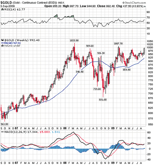 今日のまとめ 1.ゴールドの価格は主にチャート妙味から動いている 2.ETFを取引するのと金鉱株を取引する方法がある 3.値動きの荒さに大きな違いがあるなぜゴールドに物色の矛先が回ったか?ゴールドの価格がふたたび1,000ドルの大台を狙う展開となっています。なにが金価格上昇の原因なのか?その背景に関してはいろいろな議論があるのですが、どれも説得力に欠けるものが多いです。先ず指摘されるのはこのところのドル安です。確かにこのところはドル安に振れていますし、一般的には「ドル安=ゴールドにとってはプラス」と考えられているのでこれがある程度影響しているのは間違いないと思います。しかし、今のゴールド相場をドル安ですべて説明してしまうには少し説得力が足らない気がします。もうひとつ最近話題になっているのが、中国の国営テレビ、CCTVで個人投資家の投資対象として貴金属への投資が紹介されたことです。昔は中国では個人が金の延べ棒などを所有する事に対して制限がありました。テレビのニュース番組で貴金属投資が取り上げられたこと自体、自由化が進んでいることのなによりの証拠だというわけです。三つ目の理由として単純にゴールドのチャートが重要なポイントにさしかかっているからという意見もあります。実際、ゴールドのチャートはペナント(三角旗)を形成しており、上に抜けても、下に抜けても大きく価格が動きやすい、「煮詰まった」形になっていると言えるでしょう。(出典:ストックチャーツ・ドットコム)ゴールドの動きをトレードするにはさて、ゴールドの動きに実際に投資するにはどういう方法があるのでしょうか?先ず国内ETFとして「SPDRゴールド・シェア」(コード番号1326)と「金価格連動型上場投資信託」(コード番号1328)が挙げられます。これらのETFはいずれも金価格に連動するように設計されたものです。またゴールドのETFではなく、金鉱株に注目するという方法もあります。なぜ金鉱株に注目するかというと、それはボラティリティーがゴールドそのものよりも倍以上大きいからです。ボラティリティーというのは価格のブレの大きさを指します。するとボラティリティーが大きければ大きいほど、上昇局面でも上げ幅は大きくなることが予想され、逆に下落局面では大きく下げることが予想されるのです。実は最近のゴールドのボラティリティーはかなり低くなっており、半年前に比べると半分程度のブレしかありません。投資家によってはもっと値動きのある投資対象を選好する人もいるわけです。その場合、下のグラフにあるように金鉱株のボラティリティーはゴールドそのもののボラティリティー(グラフ右端の「ゴールドETF」を基準に、他の金鉱株と比較してください)より2倍以上あります。但しこれは金価格下落局面では金鉱株の方が2倍危ないことを意味しますのでご注意下さい。なお金鉱株の株価評価について簡単に振り返っておきます。ここでは産金会社各社の時価総額を確認埋蔵量で割り算し、1オンスの埋蔵量に対して株式市場での投資家が幾らの株価を支払っているかを計算してみました。この数字が大きければ大きいほど、その産金会社の評価が高いと言えますし、同時にそれは株価が割高であると理解することも出来ます。なお、この株価評価が決まる要因としてはおのおのの会社の採掘コストが大きく影響しています。たとえば下のグラフ中、一番右端にある(=つまり最も評価の低い)DRDゴールド(DROOY)は非効率な鉱山を所有しているため、採掘コストが高く、利益が出にくいコスト構造になっています。逆に評価の高いゴールド・コープ(GG)やキンロス・ゴールド(KGC)は採掘コストがきわめて低いです。金鉱株の時価評価(時価総額÷確認埋蔵量、オンス当たりドル、9月4日現在、コンステクスチュアル・インベストメンツ)これはあくまでも一般論ですが、ゴールドの価格が横ばいで、将来の金価格の見通しにあまり変化が無い場合(=最近までそういうトレンドが続いてきました)、毎期の決算でしっかりと利益が出せる、採掘コストの低い産金会社の評価が高まる傾向があると言えます。逆にゴールドの価格がどんどん上昇するような局面になると各社の採掘コストの微妙な差は余り投資判断の上では重視されなくなります。そしてむしろ「含み」、つまり莫大な確認埋蔵量があるかどうかに投資家の関心が移ってゆくと予想されます。その場合は下のグラフにあるようにバリック・ゴールド(ABX)、ニューモント・マイニング(NEM)、ゴールドフィールズ(GFI)のように確認埋蔵量が多い企業に物色が移ってゆくシナリオも考えられるわけです。