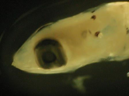 今まで日記で耳石、耳石って結構書いていましたが、よく分からない人も多いでしょうってことで、今日は写真を公開。 これは昨日の作業で撮ったものです。 ☆1枚目☆ シラスの頭の写真です。 目の後方に2つの色素がありますが、下方の色素の脇に光っているのが耳石です。 ☆2枚目☆ 私が扱っているもののなかで平均的な耳石のサイズ。 この比較のために、脇に縫い針を添えて置きました。 縫い針が大きく見えますよね。 ☆3枚目☆ この耳石はかなり小さい耳石です。 見えるかな??? 針の前方にかすかに光っているのが耳石です。 これは本当に針の先にしかのらない・・・ ちょっと力加減を間違えるとすぐに破壊してしまいます。 耳石の作業って嫌いではないのですが、やりすぎるとさすがに手が痙攣しそうになるし、肩こりも激しいし、目も痛くなるし、体にはいいものではありません。 肩こりが激しいのでストレッチ等かかさないのですが、それでも最近はますます肩こりで、偏頭痛も・・・ ってことで今日は肩こりが激しいので、ピップエレキバンを購入して貼り付けてみました。 だんだんと肩こりがよくなってきました。。