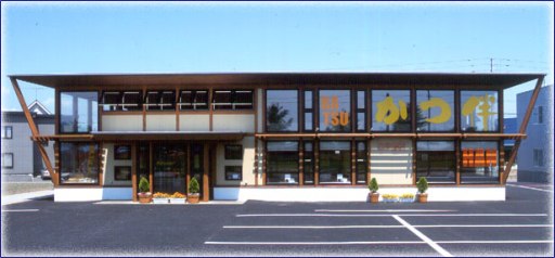 この画像は公式HPより無断借用(汗)。旭川市旭神町のとんかつ「かつ伴」に行ってきました。市内では有名なとんかつ屋「井泉」が経営する郊外型とんかつ店です。私は「とんかつ定食」でライスとキャベツをおかわり!妻は迷った末に「サラダ風かつ定食」を注文。店内で見かけたオリジナルのれん。