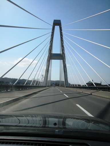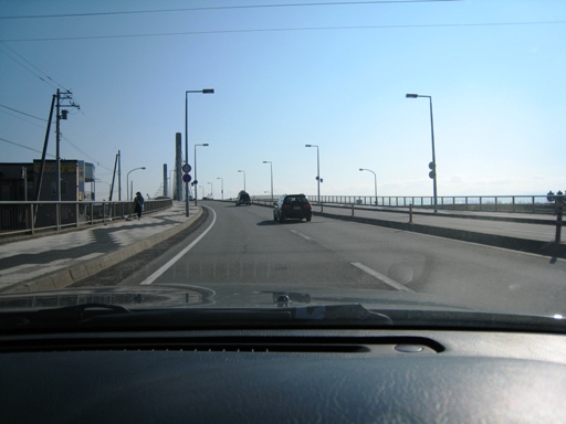 職場までクルマで約10分。旭川市内でも屈指の幹線道路「旭川環状線」を通りますが、8時前なので交通量はまださほど多くはありません。見えているのは川の街旭川を代表する橋「ツインハープ」です。
