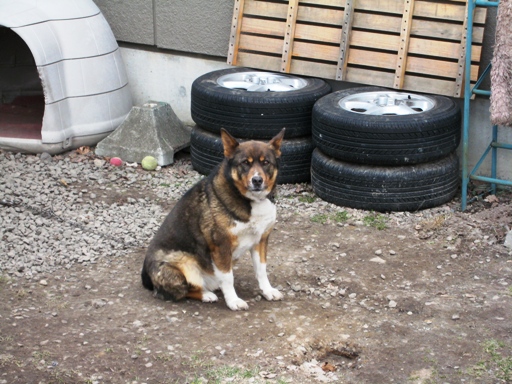 我が家の隣人「ライト」くんです。rightなのかlightなのかは知りません。見知らぬ人には極めて激しくほえるという特技(?)をもっています。対象者は灯油配送のおっちゃん、宗教関係者、メーター検針員、本物の不審者などです。おかげで我が家への訪問者は「ピンポーン」が鳴る前に「あっ、誰か来た」とわかります。「ピザの宅配まだかなあ」なんて時にはライトの鳴き声が待ち遠しかったりします。我が家が隣に引っ越してきたときには、私が自宅の玄関に立つたびに「ワンワンワン!」とやられ「困ったもんだ」なんて思っていたのですが、一週間ほどでそれもなくなりどうやら認知してくれたようです。最近では私が近づいても目すら開けてくれません。「おい!ライト!」と呼んでも薄目を開けて「ん?どうせ隣のオヤジだろ」という顔をするだけです。写真はカメラを構えて名前を呼ぶと珍しく興味を示してくれたゴキゲンのライトくんです。それでも、たまに着慣れない服を着て近づいたり、いつもと違う方向から近づくと、控えめに「わん!」とやります。「どうした、ライト?オレだぞ!」と言うと、「しまった」という顔をして「うー(ゴメンなさい、間違えました)」とうなり、恥ずかしそうに小屋に入っていくかわいいヤツです。