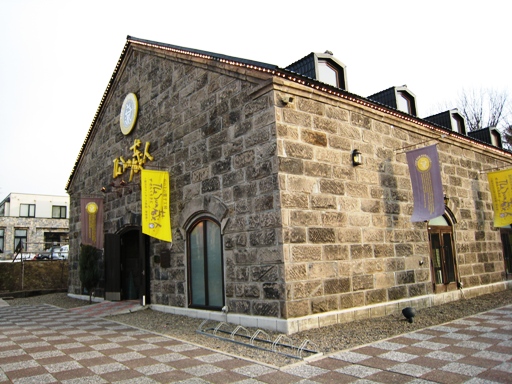 旭川市神楽岡の「The Sun 蔵人」です。「ザ・さんくろうど」と読みます。旭川市内の老舗菓子屋ロバ菓子司が経営しています。<以下、「The Sun 蔵人」ホームページより引用>ザ・さんくろうどは、明治時代に大雪山の噴火によってできた美瑛軟石を使って建てられた旧登鶴酒造の工場を解体した際に、使用されていた約3000個の美瑛軟石を、明治時代の外観を残したまま、現代の建築基準を満たして作られた大変おもむきのある石造りの蔵です。