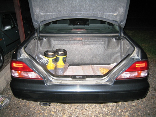 愛車のトランクの中身です。さあ、何が入っているのでしょう?左側に見えている袋は「ガーデニングセット」。長靴、つなぎ、軍手が入っています。なぜそんなモノが車のトランクに?自宅の庭&畑、永山の貸し農園「せせらぎ農園」、そして学校でも使うことがあるので、いつもトランクに積んであります。右側に見えているのは「グラブ」と「ファーストミット」。教職員体育大会の軟式野球に出場しています。現在、三回戦まで勝ち進んでいます。