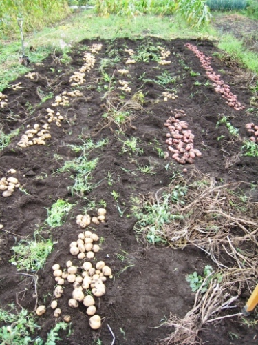 貸し農園「永山せせらぎ農園」ではジャガイモの収穫期を迎えました。今年はキタアカリ、レッドムーン、メークインの3品種です。これは細長いメークインです。煮崩れしないので、煮込み料理やカレーなどに使います。これはレッドムーン。まるでサツマイモ?いえ、れっきとしたジャガイモです。今年はこの品種が豊作でした。ジャガイモではありませんが…。枝豆は収穫期をすぎ、本来の大豆としての収穫を待っています。1年分の味噌造りの原料を確保できそうな見通しです。