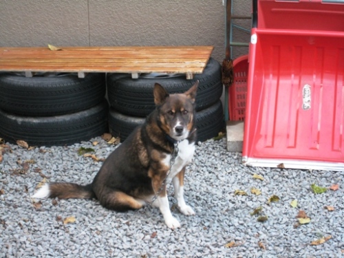 お隣のライト。いつもこうやって座っていますが、天気のいい日は「これでもか!」っていうくらい腹をお日様に当てて気持ちよさそうに昼寝しています。ライトとのお付き合いも早6年半。さすがに最近は吠えられることもないけれど、たまに間違って「ワンワン!」って言うのはどうして?