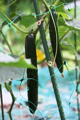 先日から気になっていたキュウリが収穫適期を迎えた。妻が帰省中なのでキュウリを収穫しても食べるあては無いのだが…。このまま放置しておくとあっという間にお化けキュウリになっちまうので、渋々(?)収穫。しかも4本も。。。