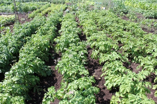 タマネギは順調??大豆も順調??先週はつぼみだったジャガイモの花。白とか紫とか…。
