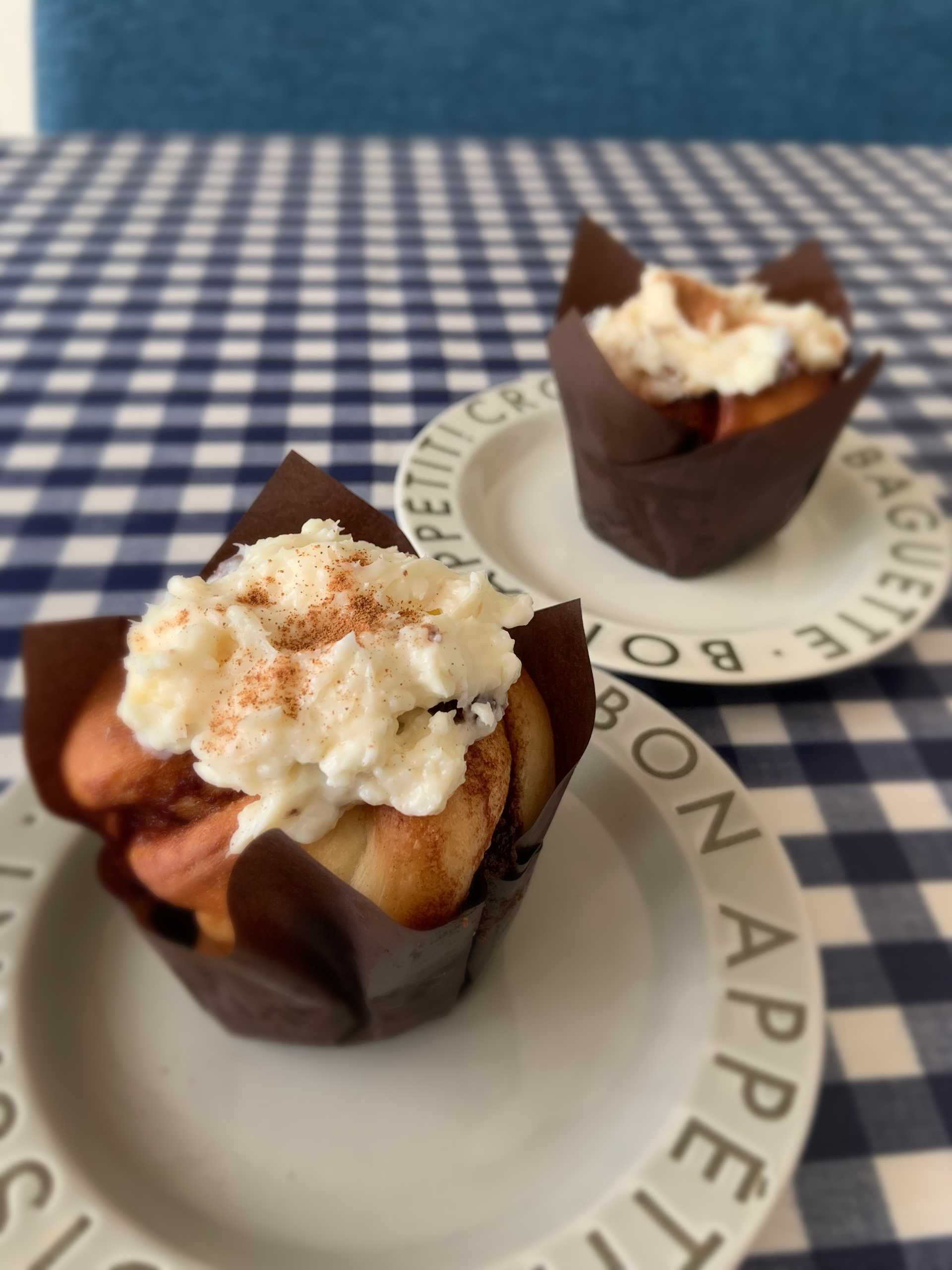 今日は朝から快晴!空気も澄んでいてとても気持ちの良い朝となりました今が一番過ごしやすい季節ですね😊昨日はパン教室へ行って来ましたといってもABCクッキングではなく私が10年ほど前に通っていたパン教室の先生が今年カフェと教室兼ねたお店をオープンされてそちらのレッスンに行って来たんですもともとこちらの先生の教室の雰囲気が好きで私もパン作りが大好きになったんですけど、その憧れの先生のレッスンをまた受けることにしたんです😊昨日作ったのはリッチシナモンロール!シナモンバターをたっぷり巻き込んで、上からチーズフロスティングクリームをかけたリッチなシナモンロールです焼いてる時も部屋中にシナモンの香りが漂って、五感に訴えかけるような癒しのパンとはいえ先生曰く「美味しいけどカロリー爆弾なので食べ過ぎ注意」とのことせっかく焼いたので、レッスン帰りに職場に差し入れとして持っていったら喜んでもらえました😊もちろん「カロリー高めです」と注意を添えておきました私はパンを作る作業も好きなんですが、人に「美味しい」と食べてもらうのもすごく幸せを感じるんです以前は「手作りなんて迷惑かな?」とか色々考えちゃってあまり人にはお渡ししてなかったんですが、きちんとレッスンを受けて作ったものは自信を持ってお渡しできるなって今までは自己流で作ってきましたがひとつひとつレッスンを重ねて、何度も焼いて自分の中に落とし込めるようこれからも地道に頑張りたいと思います😊少し肌寒くなってきたので温かい飲み物が美味しい季節ですね✨ミルクフワフワのカフェラテでホッとひと息パン作り以外にも、リビングの壁のペイントをしたりインテリアの方も楽しんでるのでまたそちらもアップしていけたらと思ってます😊涼しくなったので車中カフェも楽しめる季節になったしホントやりたいことがいっぱいで幸せです✨自分の心地よさを追求しながらこれからも過ごしていけたらいいな〜さてと今日は母の病院の付き添いに行ってきたいと思います午後からはまたパンを焼こうかなぁ😊ステキな1日になりますように!最後まで読んでいただきどうもありがとうございました😊